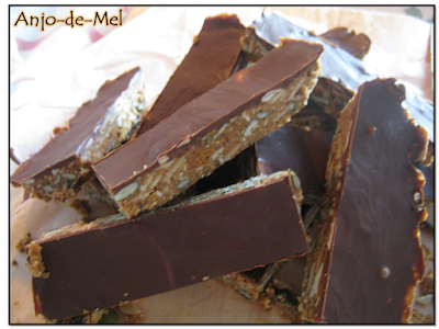«Barrinhas nutritivas para um lanche completo: manteiga de amendoim, sementes, aveia, coco, chocolate semi-amargo e, mais importante de tudo, sem açúcares refinados.